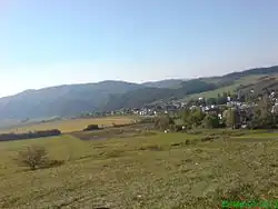 Se encuentra ubicado al oeste de la región, cerca del curso alto del río Váh (cuenca hidrográfica del Danubio) y de la frontera con la región de Trenčín.[1]