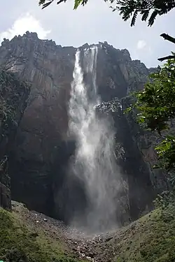 El parque nacional Canaima se extiende sobre 30.000 km² hasta la frontera con Guyana y Brasil, por su tamaño es considerado el sexto parque nacional más grande del mundo. Cerca de 65 % del parque está ocupado por mesetas de roca llamadas tepuyes. Estos constituyen un medio biológico único, presentando también un gran interés geológico. Sus acantilados escarpados y sus caídas de agua (incluyendo el Salto Ángel, que es la caída de agua más elevada del mundo, a 1.002 m) forman paisajes espectaculares.