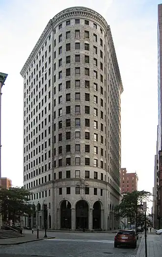 El edificio de estilo noclásico está diseñado en forma de V, y el historiador arquitectónico William McKenzie Woodward afirma que los arquitectos del edificio "claramente tenían en mente el edificio Flatiron de Daniel Burnham" (en Nueva York).[2] El peculiar nombre del rascacielos se remonta a principios del siglo XIX, cuando el comerciante Jacob Whitman montó el mascarón de proa de un barco sobre su tienda.