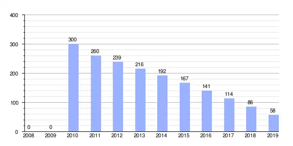 | Gráfica de evolución de Deuda viva del Ayuntamiento de Turrillas entre 2008 y 2019 |