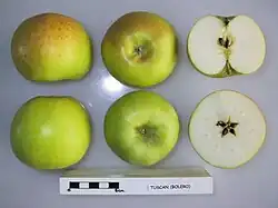 ![]() La variedad de manzana 'Tuscan' con secciones cruzadas. | ||