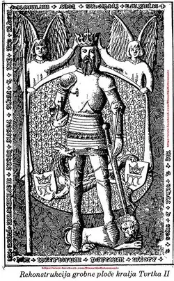 ![]() Placa funeraria del rey Tvrtko II con sus decoraciones. | ||