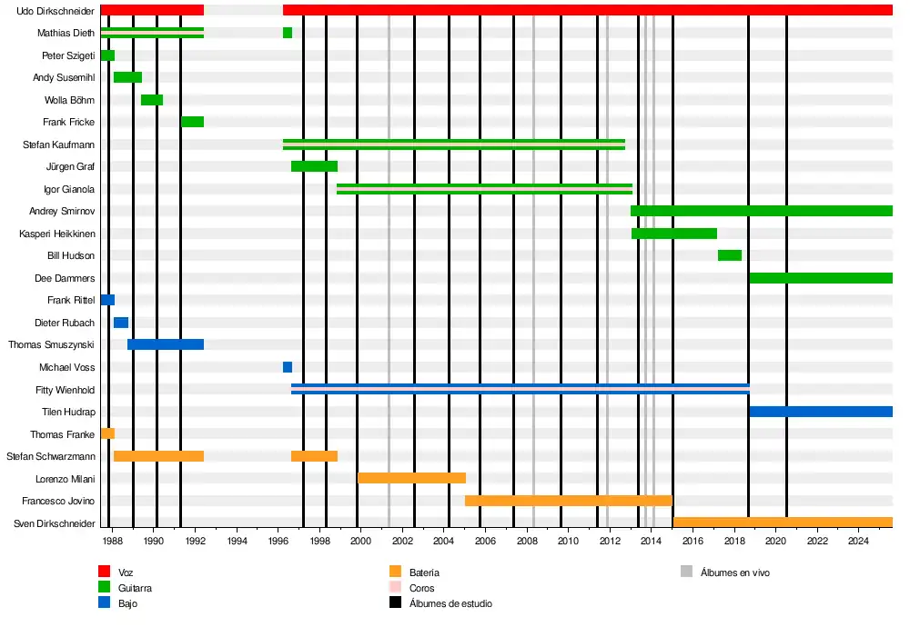 - Udo Dirkschneider - voz (1987-1992, 1996-presente)
