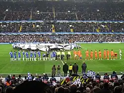 - ↑ a b c Estadio renombrado eventualmente para la Liga de Campeones, pues el reglamento de la competición impide el uso de marcas publicitarias en el nombre de los mismos.