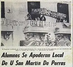 - ↑ Ramirez, J (1987). «Aspectos Históricos de la Universidad de San Martín de Porres 1960-65». Tesis para optar el grado de licenciatura. USMP, Facultad de Educuación. Archivado desde el original el 15 de febrero de 2015. Consultado el 15 de febrero de 2015.