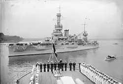 Sirvió en ambas guerras mundiales. Durante la Primera Guerra Mundial, sirvió como parte de la 9.ª División de Acorazados, que fue anexada a la Gran Flota Británica; pero no vio acción durante la guerra. Durante el período de entreguerras, realizó una variedad de tareas, que incluían cruceros de entrenamiento para guardamarinas, y visitas de buena voluntad en ultramar.