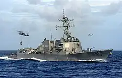 El barco es parte del esquadrón número de destructores del Grupo de ataque de portaaviones cuyo buque insignia es el portaaviones USS Carl Vinson (CVN-70).