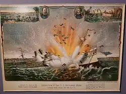 En enero de 1898, el Maine fue enviado desde Cayo Hueso, Florida, a La Habana, Cuba, para proteger los intereses estadounidenses durante la guerra de Independencia cubana. Tres semanas después, a las 21:40 del 15 de febrero de 1898, hubo una explosión a bordo del Maine en el puerto de La Habana. Investigaciones posteriores revelaron que más de 5 t de las cargas de pólvora de los cañones de 203 y 152 mm habían detonado, destruyendo un tercio de la parte delantera del buque.[49] Los restos del buque se hundieron rápidamente y quedaron en el fondo del puerto. La mayor parte de la tripulación se encontraba descansando en los dormitorios de tropa en la parte delantera del buque. 266 hombres perdieron la vida en la explosión o poco después, y otros ocho a consecuencia de sus heridas. El capitán Sigsbee y la mayoría de los oficiales sobrevivieron a la explosión, ya que sus dormitorios estaban en la parte trasera del buque. En conjunto, hubo solo 89 supervivientes, de los que 18 eran oficiales.[50] El 21 de marzo, un consejo de guerra naval en Cayo Hueso declaró que la causa de la explosión había sido una mina.[51]