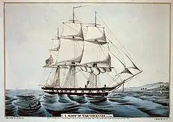 El barco zarpó por primera vez el 3 de septiembre de 1826, desde Nueva York con destino al Pacífico a través del Cabo de Hornos. Navegó extensamente en ese océano, visitando las islas hawaianas en 1829 para luego dirigirse a Macao en 1830, bajo el mando del comandante William B. Finch.[1] : pp.208–9 Su viaje de regreso se realizó a través de China, Filipinas, el Océano Índico y el Cabo de Buena Esperanza. El capellán del barco, Charles Samuel Stewart, publicó un libro sobre el viaje.[2] Después de casi cuatro años, el barco regresó a Nueva York el 8 de junio de 1830, convirtiéndose así en el primer barco de la Armada de los EE. UU. en circunnavegar la Tierra. Dos días después, fue dado de baja de la Armada.