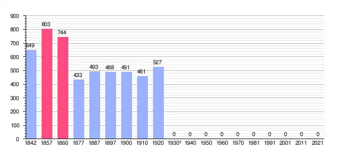 º Entre el censo de 1930 y el anterior, este municipio desaparece porque se agrupa en el municipio 01008 (Arrazua Ubarrundia) Población de derecho según los censos de población del INE. Población de hecho según los censos de población del INE. Población según el padrón municipal de 2021 del INE.[3] |
