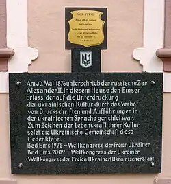 El ucaz de Emsk (en ruso: Эмский указ [Emski ukaz]; en ucraniano: Емський указ [Emsky ukaz]) fue un edicto (ucase) secreto del zar Alejandro II de Rusia promulgado en 1876, por el que se prohibía expresamente el uso del idioma ucraniano en textos de cualquier clase dentro del Imperio ruso, con la excepción de la reimpresión de antiguos documentos. También prohibía la importación de publicaciones en ucraniano y la representación de obras de teatro o la enseñanza escolar o universitaria en ucraniano, así como la traducción de libros en el idioma ucraniano.[1] Fue llamado así por la ciudad alemana de Bad Ems, donde el edicto fue firmado por el propio zar durante sus vacaciones.