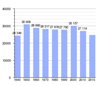 | Gráfica de evolución demográfica de entre 1940 y 2015 |