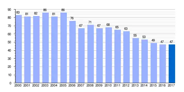 | Gráfica de evolución demográfica de Ullíbarri-Arana[3] entre 2000 y 2017 |