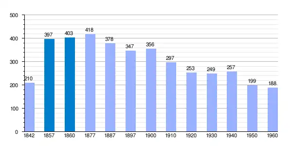 | Gráfica de evolución demográfica de Undués Pintano[2] entre 1842 y 1960 |