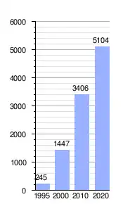 | Gráfica de evolución demográfica de Unidades Habitacionales entre 1995 y 2020 |