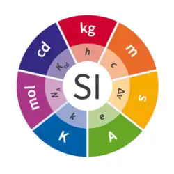 El Sistema Internacional de Unidades (en francés Système international d'unités) o sistema internacional (SI) es un sistema constituido por siete unidades básicas: metro, kilogramo, segundo, kelvin, amperio, mol y candela, que definen las correspondientes magnitudes físicas fundamentales y que han sido elegidas por convención. Las magnitudes físicas fundamentales se complementan con dos magnitudes físicas más, denominadas suplementarias, cuyas unidades se utilizan para la medición de ángulos. Por combinación de las unidades básicas se obtienen las demás unidades, denominadas Unidades derivadas del Sistema Internacional, y que permiten definir cualquier magnitud física. Se trata de la versión moderna del sistema métrico decimal,[1][2][3] por lo que el SI también es conocido de forma genérica como sistema métrico. Es el sistema de unidades vigente en casi todos los países del mundo.