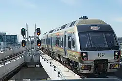 El Union Pearson Express (UP Express o UPX) es un enlace ferroviario del aeropuerto que conecta Union Station en el centro de Toronto con el Aeropuerto Internacional Toronto Pearson. El UP Express comenzó a operar el 6 de junio de 2015, a tiempo para los Juegos Panamericanos de 2015.[1][2][3] El UP Express viaja entre Union y Pearson en 25 minutos con salidas cada 15 minutos, los siete días de la semana.[4] En el anuncio de lanzamiento, se afirmó que se proyectaba que UP Express transportaría 2,35 millones de pasajeros al año y eliminaría aproximadamente 1,2 millones de viajes en automóvil en el primer año.[1]
