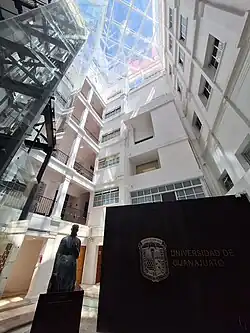 La Universidad de Guanajuato (UG), benemérita y autónoma es una universidad pública mexicana.[2] Se dedica a la educación en los niveles medio superior y superior y a la investigación en todas las áreas del conocimiento en el estado de Guanajuato.