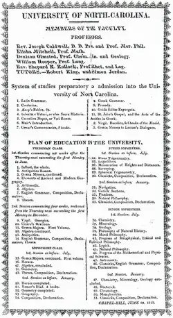 Catálogo de cursos de la Universidad de Carolina del Norte a partir de junio de 1819