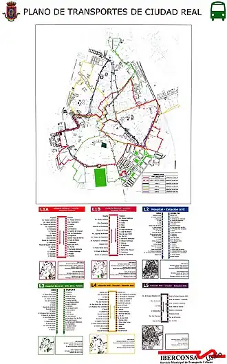 La red urbana de Ciudad Real cuenta con 7 líneas regulares, que cumplen la función de vertebrar la totalidad de la ciudad y sus pedanías. Iberconsa también opera la línea 50, suburbana, que conecta Ciudad Real con la localidad de Miguelturra. Las líneas se pueden dividir en varios grupos: