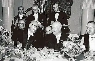 (1956-1957; 1958-1959) Vieno J. Sukselainen (1957; 1959-1961) Rainer von Fieandt (1957-1958) Reino Kuuskoski (1958) Martti Miettunen (1961-1962; 1975-1977) Ahti Karjalainen (1962-1963; 1970-1971) Reino R. Lehto (1963-1964) Johannes Virolainen (1964-1966) Rafael Paasio (1966-1968; 1972) Mauno Koivisto (1968-1970; 1979-1981) Teuvo Aura (1970; 1971-1972) Kalevi Sorsa (1972-1975; 1977-1979) Keijo Liinamaa (1975) | |