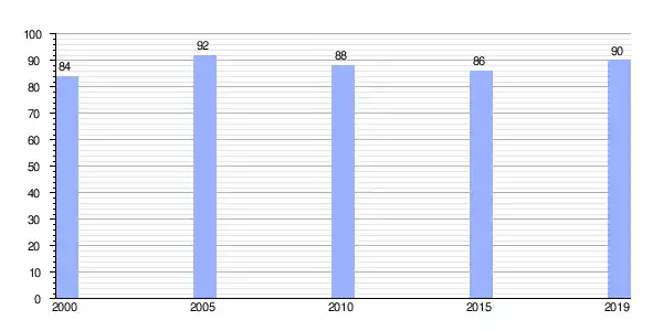| Gráfica de evolución demográfica de Uriz (parroquia) entre 2000 y 2019 |