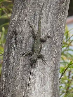 Las lagartijas arborícolas (Urosaurus ornatus) están entre las lagartijas más comunes en el suroeste de los Estados Unidos, y norte y centro de México. Podemos, usualmente, encontrarlas cuidándose en un lugar soleado en un árbol, valla, o pared, esperando insectos que llegan arrastrándose o volando, que les servirá como alimento. Los machos tienen panzas azul brillante y papadas coloridas. Las hembras tienen papadas naranjas, pero no tiene manchas azules en el vientre.
