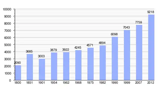 | Gráfica de evolución demográfica de Urrugne entre 1800 y 2012 |