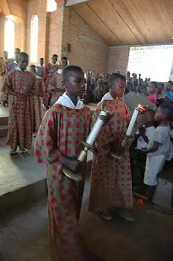 - ↑ Joseph Ratzinger, L'esprit de la liturgie (Ad Solem Éditions SA, Genève, 2001, "Le corps dans la liturgie", p.157: "Ce qu'on appelle ainsi dans la liturgie éthiopienne ou dans la forme zaïroise de la liturgie romaine, est en fait une procession en cadence, tout à fait appropriée à la dignité de la liturgie. Cette démarche rythmée confère une unité et une ordonnance aux différents moments de la liturgie, une beauté et une dignité à la mesure de Dieu"]
