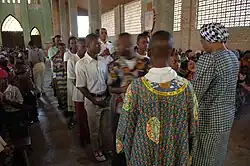 La participación del pueblo se expresa incluso mediante la danza: gestos y movimientos que expresan la participación de todo el cuerpo en la oración, como es habitual en las celebraciones litúrgicas en muchos países africanos,[5][6][7] y que no debe confundirse con lo que en la cultura europea se llama "bailar", como indicó el papa Benedicto XVI.[8]