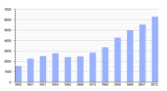 | Gráfica de evolución demográfica de Ustaritz entre 1800 y 2012 |