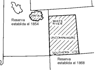 En 1882 fue oficializada la reserva Ute, pero en 1888 podía volver al dominio público. En 1897 se creó la reserva Uncompaghre, con 12 540 acres parcelados, mientras que en abril de 1899 unos 523 879 acres de los ute fueron abiertos a los indios, y los 483 750 restantes se dejaron en la reserva Winimuche. El verano de 1906 unos 400 ute meridionales abandonaron la reserva y fueron hacia Pine Ridge, cerca de South Fork. Pero fueron sitiados por la caballería y tuvieron que ir a Fort Mead (Dakota del Sur), donde esperaron órdenes del Departamento Indio de Washington, quien en 1908 les obligó a volver. En 1915 volvieron a producirse escaramuzas por la llegad del ferrocarril. En 1923 los norteamericanos envenenaron el caudillo ute Posey con harina porque reclamaba tierras arrebatadas.