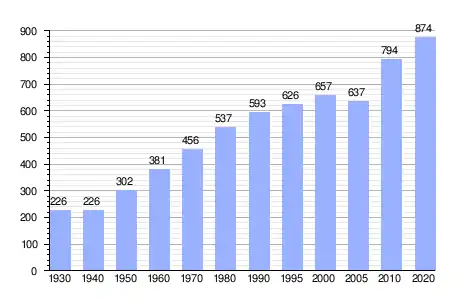 Población de los censos y conteos del Instituto Nacional de Estadística y Geografía (INEGI).[7] |