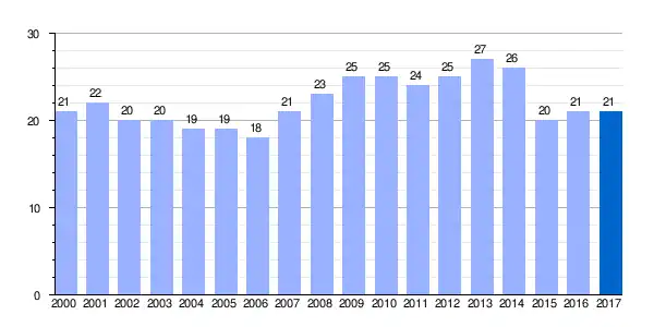 | Gráfica de evolución demográfica de Uzquiano[3] entre 2000 y 2017 |