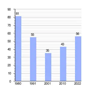 | Gráfica de evolución demográfica de Vásquez entre 1980 y 2022 |