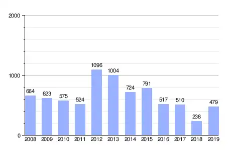 Deuda viva del Ayuntamiento de Vélez de Benaudalla en miles de Euros según datos del Ministerio de Hacienda y Ad. Públicas.[5] |