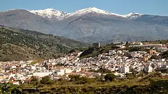 ![]() Vista de Vélez de Benaudalla, con Sierra Nevada al fondo | ||