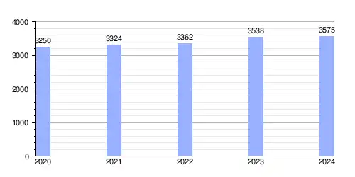Hasta 2024 la población era de 3575 habitantes,[2] con una densidad de población de 208,82 hab/km².[2]