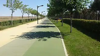 La vía cuenta con dos tramos diferenciados: uno de 500 m de longitud que discurre por la avenida de la Mancha y conecta la avenida de España con el Jardín Botánico de Castilla-La Mancha, y otro, de más de 2 km de longitud, que discurre entre el Jardín Botánico de Castilla-La Mancha y el parque periurbano La Pulgosa.[2]