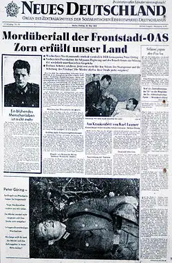 La prensa occidental también adoptó el falso relato de Müller y publicó el titular «El tiroteo de Vopos causó la muerte de su propio compañero de puesto».[38] En otros casos, la prensa, especialmente el segmento sensacionalista, publicó reportajes en un lenguaje drástico acusando al Muro y a los responsables. Por ejemplo, tras la muerte de Günter Litfin, el tabloide B.Z. tituló: «¡Los cazahombres de Ulbricht se convirtieron en asesinos!». El Frankfurter Allgemeine Zeitung escribió sobre la «brutal sangre fría» de los guardias fronterizos.[39]