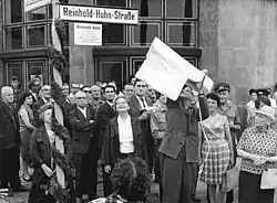 - ↑ «Gedenken an Mauerbau in Berlin vor 54 Jahren» [Conmemoración de la construcción del Muro de Berlín hace 54 años]. ARD-Tagesschau. 13 de agosto de 2015. Archivado desde el original el 27 de marzo de 2016. Consultado el 20 de junio de 2025.