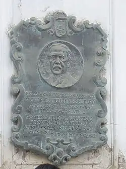 - ↑ EGUIGUREN ESCUDERO, LUIS ANTONIO "El mártir pescador José Silverio Olaya y los pupilos del real Felipe", Imprenta Torres Aguirre, Lima 1945 p. 152:"Frente a ese terreno que tiene tan honda tradición,camino real por medio, está la Escuela de Clases (...). En ese local reconoció el Congreso, la presidencia de García Calderón, siendo Secretario de aquella Asamblea un personaje de mi nombre y de mi sangre"