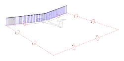 El modelo de vórtice en forma de herradura es una representación simplificada del sistema de vórtices presente en el flujo de aire alrededor de un ala. Este sistema de vórtices se modela mediante el vórtice de unión (unido al ala) y dos vórtices de punta de ala, por lo que tiene una forma que recuerda vagamente a una herradura.[1][2] Un vórtice inicial se desprende cuando el ala comienza a moverse a través del fluido, que se disipa bajo la acción de la viscosidad,[3] al igual que los vórtices de arrastre que se encuentran muy por detrás del avión.