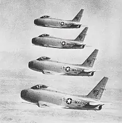 F4U Corsair (1943-53) F9F Panther (1953-54) F9F Cougar (1954-56) FJ-4 Fury (1956-59) F-8 Crusader (1959-64) F-4 Phantom II (1964-82) F/A-18 Hornet (1982- | |