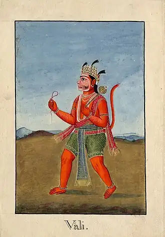 En el marco de la mitología hinduista, Vali ―también conocido como Valin― era un vanara (hombre mono hablante en sánscrito), rey de Kiskindha, hijo del dios Indra y hermano mayor del vanara Sugriva. El rey Rama ―un avatar del dios Visnú― lo asesinó cobardemente por la espalda.