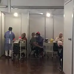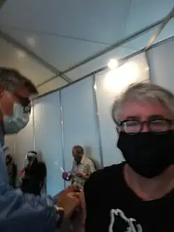 La primera persona en recibir la vacuna en el Hospital Posadas fue el médico de terapia intensiva Francisco Traverso.[21]