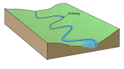 En derecho se hace referencia a la vaguada especialmente cuando se trata de fijar la línea fronteriza en un curso de agua aunque, cuando se trata de ríos divagantes, de llanuras, con numerosos meandros, puede ser problemático fijar el límite o frontera en el cauce de un río. La línea de vaguada (a veces también aparece con el nombre de talweg o thalweg, que es el nombre original en alemán) representa en el sistema hidrográfico, invertida, la aplicación del principio de las altas cumbres en el sistema orográfico.