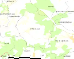 - ↑ Página donde se especifican, entre otras cosas, los datos demográficos de la comuna de Jours-en-Vaux entre los años 1793 y 2006. Consultado el 28 de junio de 2016 (en francés)