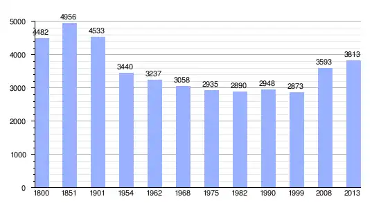 | Gráfica de evolución demográfica de Val-d'Anast entre 1800 y 2013 |