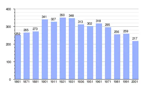 | Gráfica de evolución demográfica de Val Rezzo entre 1861 y 2001 |